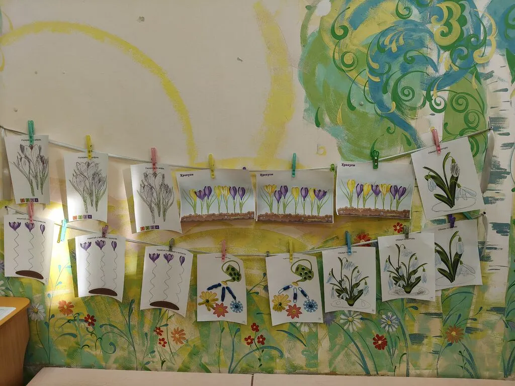 На протяжении двух недель воспитанники знакомились с первыми весенними цветами – подснежником и крокусом. Чтобы знакомство было интересным и полезным, были использованы разнообразные дидактические игры и развивающие задания: ребята собирали математические пазлы, составляли целое из разрезных картинок, учились внимательно всматриваться в детали в играх «Найди тень», «Найди отличия», «В какую сторону смотрит подснежник». Также внимание уделялось развитию мелкой моторики и графических навыков: дети уверенно проводили карандашом по графомоторным дорожкам, раскрашивали картинки по цветовым меткам и выполняли другие задания. Творческая часть проекта стала настоящим открытием для юных художников: в технике пластилинографии они учились катать колбаски‑стебельки и шарики‑бутоны, создавая объёмные изображения, а на занятиях по аппликации аккуратно приклеивали бутоны к готовым стебелькам, собирая весенние букеты.