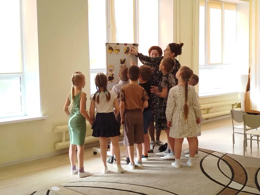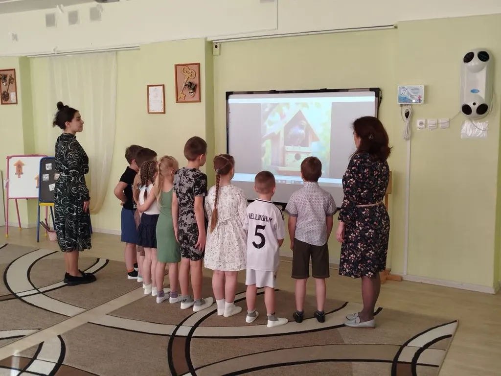 В финале занятия дети успешно справились с визуальной загадкой — нашли птиц по их теням — и исполнили для них красивую весеннюю песенку.