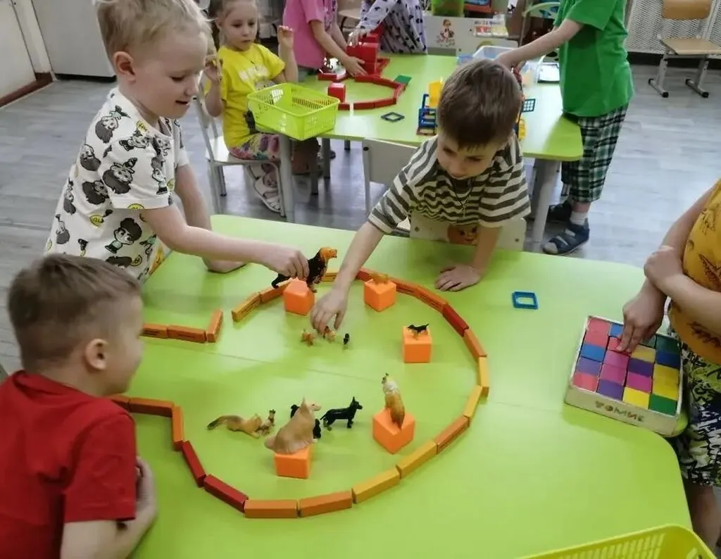 Итогом тематического дня стало то, что ребята смогли попробовать себя в роли цирковых артистов. В свободной деятельности организовали сюжетную игру «На арене цирка». Строили здание цирка, арену, на которой выступали дрессированные собачки, тигры, лошади, рисовали и собирали клоунов из логических блоков Дьенеша.