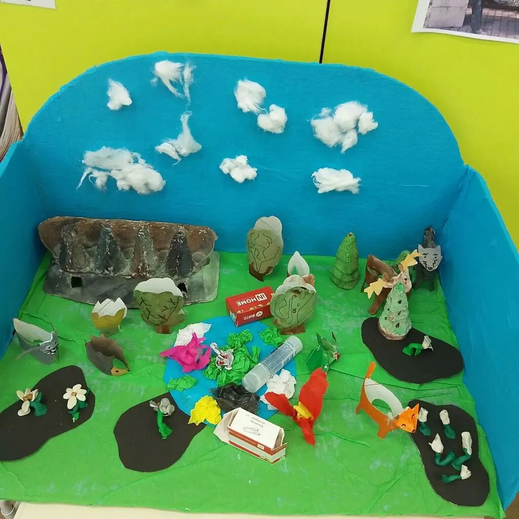 Ребята вспомнили основные правила поведения на природе: не мусорить, беречь растения и животных, не шуметь в лесу. Особое внимание уделили теме переработки отходов. С помощью бросового материала — бумажных втулок, тарелок и коробок — воспитанники создали коллективный макет-панораму «Планета Земля в опасности!». В процессе работы дети рассуждали, почему важно сдавать бумагу, стекло, пластик и металл на переработку, и как это помогает сохранить чистоту нашей планеты.